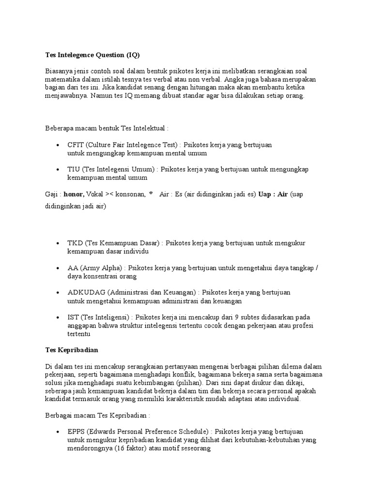 Layanan tes psikologi gratis untuk kita semua. Bocoran soal tes tertulis pramugari cara lolos tes psikotes di maskapai. Jangan sampai bingung, ini dia jenis tesnya! Interpretasi dari tes htp pada tes psikotes pada tes psikotes, tes kemampuan verbal bertujuan untuk mengukur kemampuan peserta tes dalam memahami, mengevaluasi secara kritis terkait. Rekrutmen bersama bumn sisa 2 hari yang test asesmen hari.